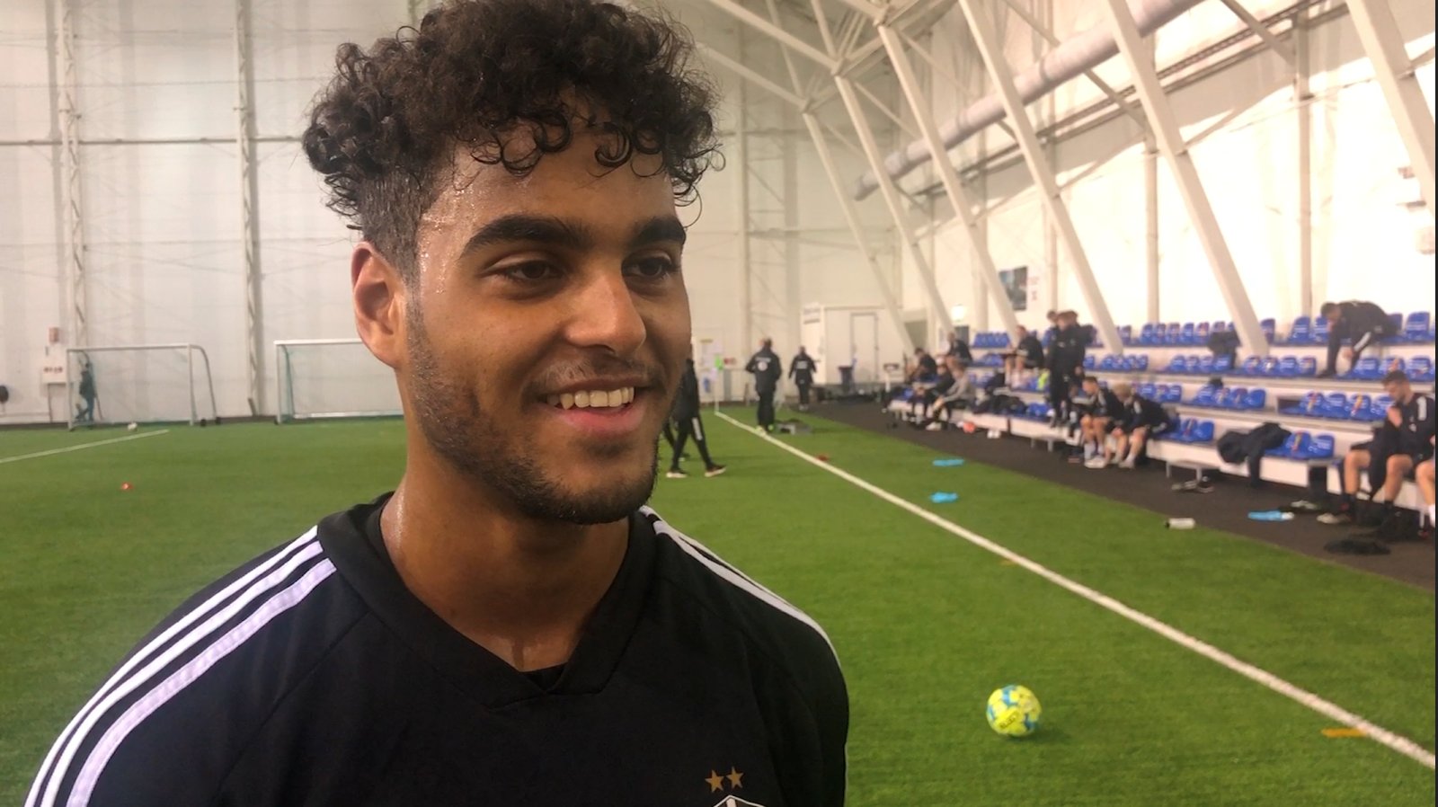 Emil Konradsen Ceide har spilt høyrekant på alle treninger i 2021. På Frøya fikk han testet ut posisjonen i en internkamp.