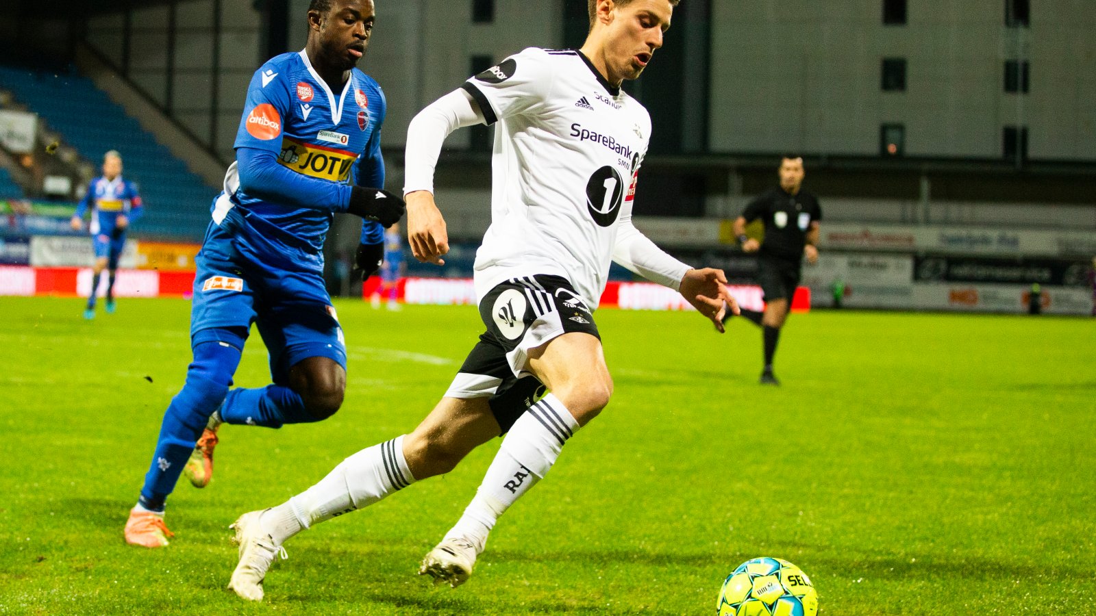 Det var Sandefjord som kom best i gang på et regntungt Sandefjord Arena. Kristoffer Hansen kom til et skudd fra skrått hold, men navnebror André gjorde en god redning.