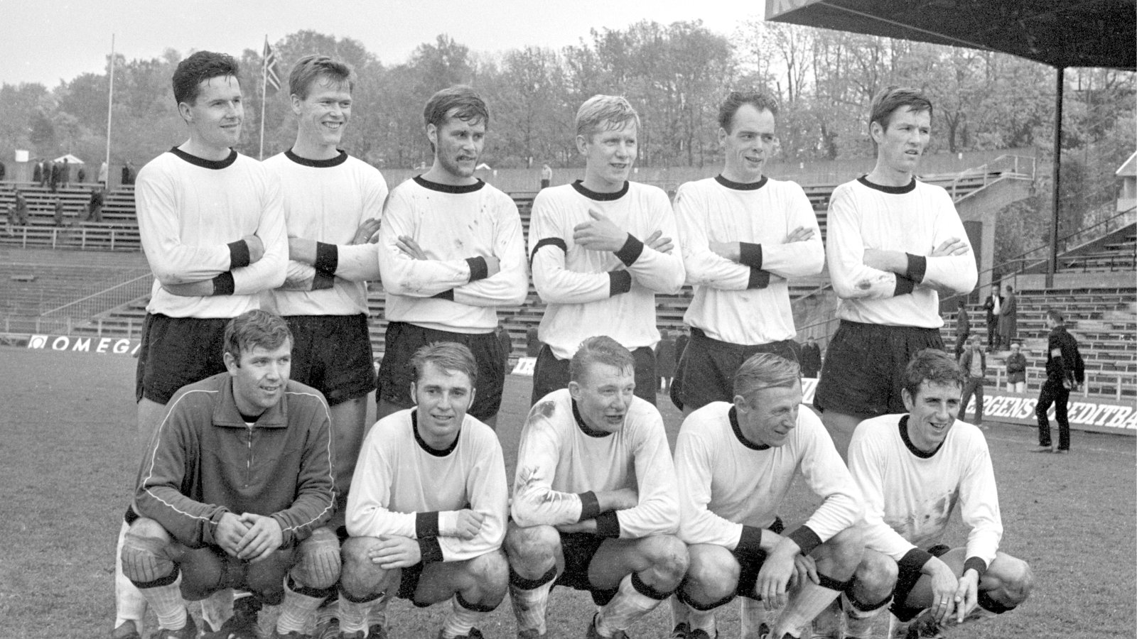 – Det var akkurat plass til linjemannen mellom sidelinja og tribunen, som for sikkerhets skyld startet med en høy betongkant. Slikt var vi ikke vant til fra Norge, der det var løpebaner overalt, husker veteranen.